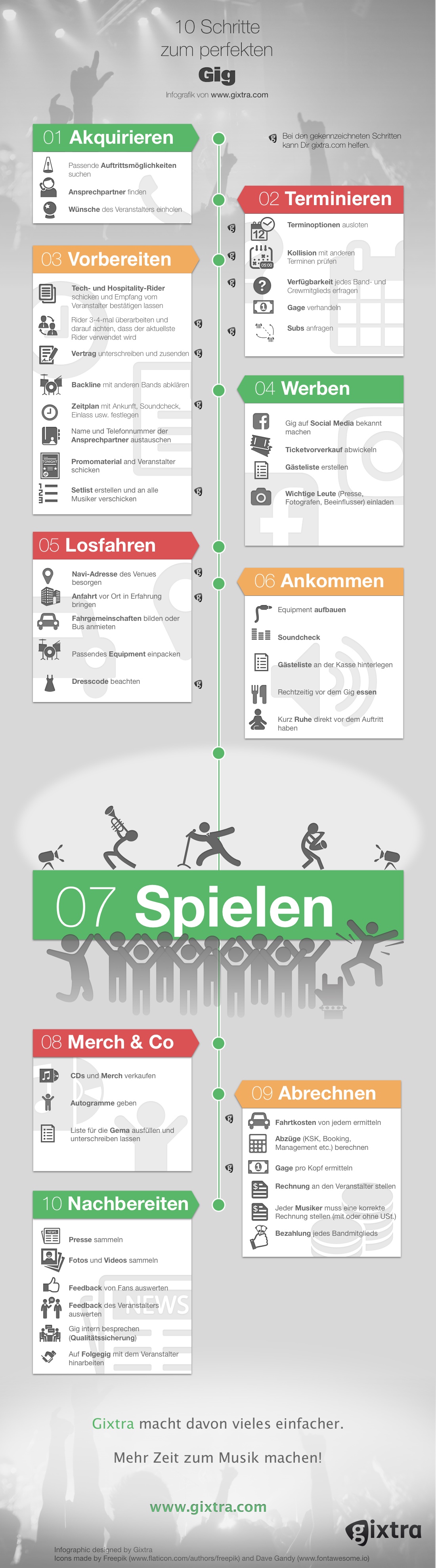 Jeder Gig ist eingebettet in eine Flut von Orga-Aufgaben. Du weisst sehr gut, was es vorab alles zu klären gibt! Hier nur einige Beispiele:
